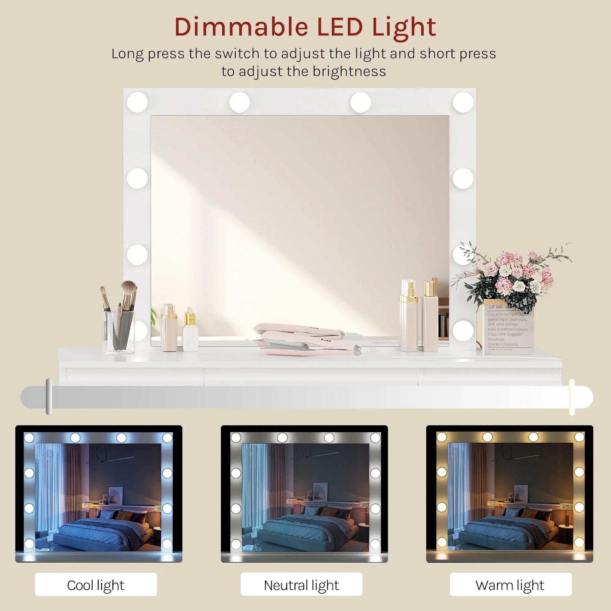 Coiffeuse avec miroir LED & prises – Bureau de maquillage moderne à 7 tiroirs